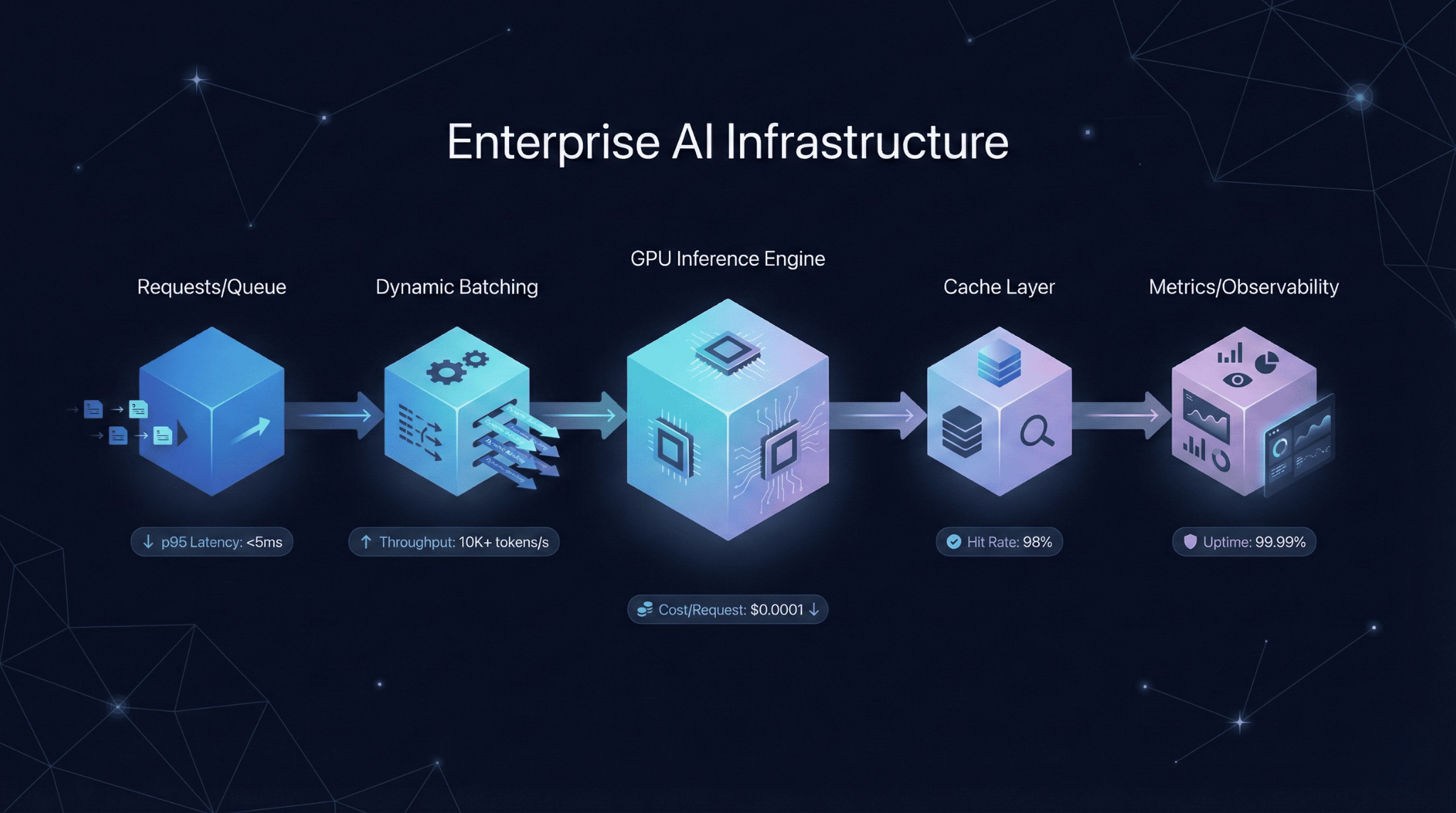 Not all requests are equal. Group similar requests (same model, similar sequence length/image size) to maximize batch efficiency. Use priority queues so latency-sensitive traffic isn’t blocked by bulk jobs.