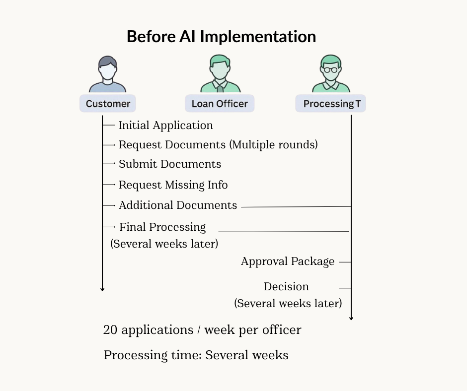 The company faced significant operational inefficiencies in their loan application process: